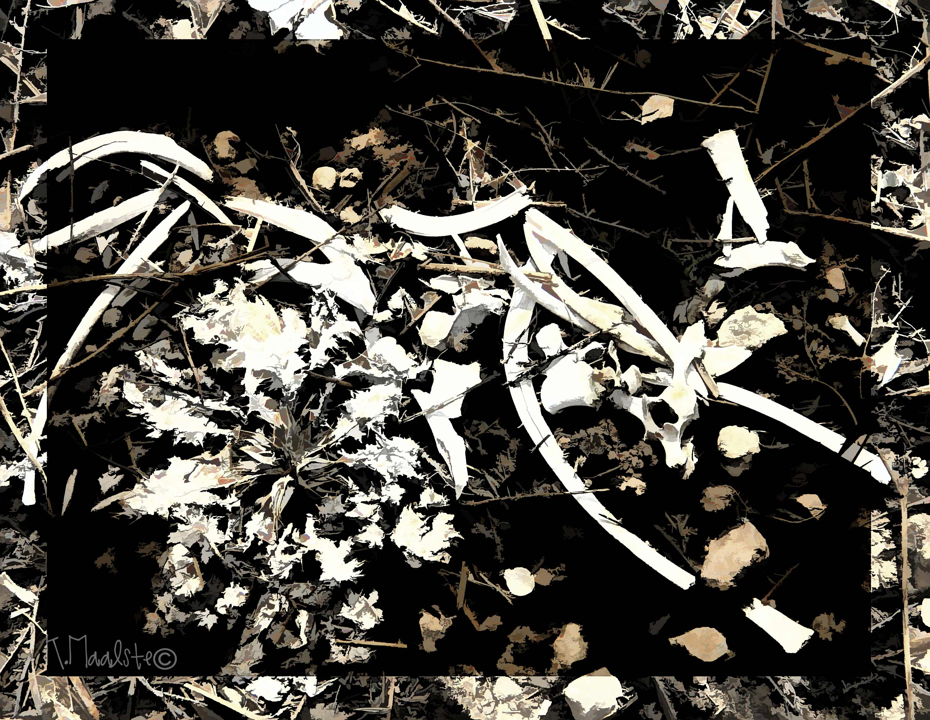 This week Kim Klassen has offered her new texture “Happy Heart” (also offered in Weekend Texture – just a little doubling up) to use in her challenge of photographing something white, I guess anything goes as she claims that photographing something in her “White” room qualifies. I am using an image of bones that I photographed just outside of Cullulleraine last week. I used the Happy Heart texture and then placed the image in Topaz Lab Black and White filter, and created an abstract image of the bones.