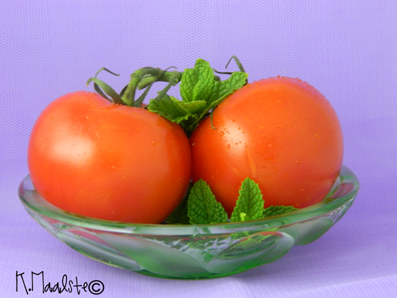 What a challenge, I think I have photographed all the food in the kitchen and fridge, it is not easy. The tomatoes were photographed in my light box made from a carton (although I did photograph in the window with the sheet and posterboard}. When I went to photograph the eggs this morning the light was diffused because of the overcast day, so I just used a sheet on the window. The cooked eggs are as shot. The tomatoes and raw eggs I put through Raw in PSE10. In addition to the tomatoes and eggs I have added grapes that I photographed after I had published this post.